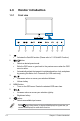 1.3 Monitor introduction 1.3.1 Front view 1 2 3 4 5 6 7 7 1. • Activates the QuickFit function.(Please refer to 1.3.3 QuickFit Function). • Selects a desired preset mode. • Exits the OSD menu or goes back to the previous menu when the OSD menu is active. • Automatically adjusts the image to its optimized position, clock, and phase by pressing this button for 2-4 seconds (for VGA mode only). • Decreases values or moves your selection left/down. • Volumn hotkey 2. button: 3. 4.