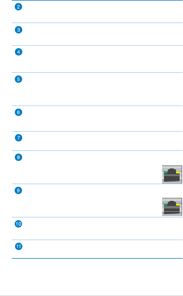 Connect network cables into these ports to establish LAN connection.