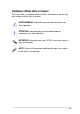 Symboles utilisés dans le manuel Pour vous aider à accomplir certaines tâches correctement, prenez note des symboles utilisés dans ce manuel. AVERTISSEMENT: Information pour éviter de vous blesser lors d’une opération. ATTENTION: Information pour éviter d’endommager les composants lors d’une opération. IMPORTANT: Information que vous DEVEZ suivre pour mener à bien une opération. NOTE: Astuces et informations additionnelles pour vous aider à mener à bien une opération.