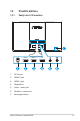 1.4 Povežite kablove 1.4.1 Zadnji deo LCD monitora 7 HDMI-2 HDMI-1 2 3 1 1. DC-IN port 2. HDMI-2 port 3. HDMI-1 port 4. DisplayPort 5. Audio - ulazni port 6. Slušalice - izlazni port 7.