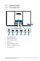 1.5 Monitöre giriş 1.5.1 Kontroller düğmesini kullanma Görüntü ayarlarını yapmak için monitörün alt kısmındaki kontrol düğmesini kullanın. Giriş Seçimi Kapat Menü Güç 1. Güç Düğmesi/Güç Göstergesi: • Monitörü açıp kapatmak için bu düğmeye basın. • Güç göstergesindeki renklerin tanımları aşağıdaki tablodadır. 2. Açıklaması Beyaz AÇIK Amber Bekleme modu KAPALI KAPALI (5 yönlü) Düğmesi: • Monitörü açmak için bu düğmeye basın. • Ekran menüsünü açar.
