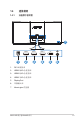 1.4 連接纜線 1.4.1 液晶顯示器背面 7 1 HDMI-3 HDMI-2 HDMI-1 DP 2 3 4 5 1. DC-IN 連接埠 2. HDMI-3(V2.0) 連接埠 3. HDMI-2(V2.0) 連接埠 4. HDMI-1(V2.0) 連接埠 5. DisplayPort 6. 耳機輸出埠 7.