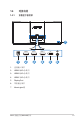 1.4 连接线缆 1.4.1 液晶显示器后部 7 1 HDMI-3 HDMI-2 HDMI-1 DP 2 3 4 5 1. 直流输入端口 2. HDMI-3(V2.0) 端口 3. HDMI-2(V2.0) 端口 4. HDMI-1(V2.0) 端口 5. DisplayPort 6. 耳机输出端口 7.