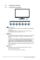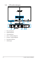 1.3.2 LCD monitora aizmugure 6 7 1 1-4 2 1. DC-in pieslēgvieta 2. HDMI pieslēgvieta 3. VGA pieslēgvieta 4. Audio - ievades pieslēgvieta 5. Austiņas - izejas pieslēgvieta 6. Kensington slēdzene 7. Vadības pogas 3 4 5 1. nodaļa.