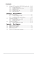 Contents 5.5 LSI Logic MPT Setup Utility (DSBF-D/SAS model only) ...... 5-40 5.5.1 Integrated Mirroring .............................................. 5-40 5.5.2 Integrated Striping (IS) volume ............................ 5-46 5.5.3 Managing Arrays ................................................... 5-49 5.5.4 Selecting a boot disk ............................................ 5-56 5.5.5 Global_Properties ................................................. 5-57 Chapter 6: 6.1 6.2 6.