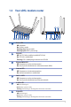 1.3 Your xDSL modem router Wi-F i ADS Dua L / VDS l Ban L Mod d em 802.11a Rou ter c DSL E-WAN WPS Wi-Fi on/off Power LED Off: No power. On: Device is ready. Flashing slow: Rescue mode Flashing quick: WPS is processing. DSL LED Off: No DSL link or unable to establish DSL link. On: DSL link is established. Flashing: DSL is attempting to connect to a DSLAM. Ethernet WAN LED Off: No power or no physical connection. On: Has physical connection to a wide area network (WAN).