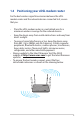 1.4 Positioning your xDSL modem router For the best wireless signal transmission between the xDSL modem router and the network devices connected to it, ensure that you: • • • • • Place the xDSL modem router in a centralized area for a maximum wireless coverage for the network devices. Keep the device away from metal obstructions and away from direct sunlight. To prevent signal interference or loss, keep the device away from 802.11g or 20MHz only Wi-Fi devices, 2.