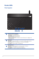 Funciones ubicadas en la parte posterior 1 2 3 4 5 6 1 Botón Restablecer Este botón restablece o restaura la configuración predeterminada de fábrica del sistema. 2 Interruptor de encendido y apagado Presiónelo para encender o apagar el sistema. 3 Puerto de alimentación (entrada de CC) Inserte el adaptador de CA integrado en este puerto y conecte el router a una toma de corriente. 4 Puertos LAN 1 ~ 4 Conecte los cables de red en estos puertos para establecer una conexión LAN.