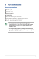 1 Gyors áttekintés A csomag tartalma DSL-N12E_C1 Hálózati kábel Hálózati adapter Telefonkábel Gyors üzembe helyezési útmutató Támogató CD (kézikönyv, segédprogram szoftver) Elosztó (típusa térségenként eltérő) • Ha bármelyik elem sérült vagy hiányzik, vegye fel a kapcsolatot az ASUS-szal műszaki támogatás vagy kérdések ügyében, tekintse meg az ASUS Support Hotline listát a kézikönyv végén.