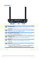 A ADSL router Előlap DSL-N12E 300Mbps Wi-Fi ADSL Modem Router Működésjelző LED Ki: Nincs áram. Be: Az eszköz használatra kész. Lassan villog: Mentés mód. Gyorsan villog: WPS feldolgozás. / Gyári alapbeállítások visszaállítása. ADSL LED Állandó fény: Nincs ADSL-kapcsolat, vagy nem lehet ADSL-kapcsolatot létesíteni. Felváltva villog és sötét: Az ADSL csatlakozást kísérel meg a DSLAM-hez. Be: Az ADSL-kapcsolat létrejött. Internet LED Ki: Nincs áramforrás vagy internet-kapcsolat.