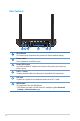 Rear features Reset button This button resets or restores the system to its factory default settings. Power switch Press to power on or off the system. Power (DC-In) port Insert the bundled AC adapter into this port and connect your router to a power source. LAN 1 ~ 4 ports Connect network cables into these ports to establish LAN connection. DSL port Connect to a splitter or to a telephone outlet via an RJ-11 cable. WPS button* This button launches the WPS Wizard.