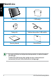 Pakendi sisu Eesti Eee Pad USB laadija Toitepistik Dokkimiskonnektor USB kaablile nual User Ma Kasutusjuhend Garantiikaart • Kui mõni artiklitest on kahjustatud või puudub, siis võtke ühendust jaemüüjaga. • Seadme Eee Pad toitepistiku konfiguratsioon võib piirkonniti varieeruda, lähtuvalt selle ühilduvusest toitepesaga.