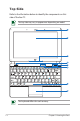 Top Side Refer to the illustration below to identify the components on this side of the Eee PC. The top side may vary in appearance depending on model. 1 2 3 PC 4 5 6 7 8 The keyboard differs for each territory.