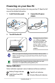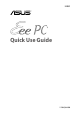 Powering on your Eee PC These are only quick instructions for using your Eee PC. Read the full manual for detailed information. 1. Install the battery pack 2. Connect the AC power adapter 1 3 3. 2 Turn ON the Eee PC Damage may occur if you use a different adapter to power the Eee PC. You may damage both your battery pack(s) and the Eee PC with a faulty AC-DC adapter.