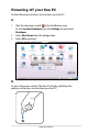 Launching First Run Wizard For the first time you start your Eee PC, the First Run Wizard will auto-launch and lead you through setting up your preferences and some basic information. Follow the wizard instructions to finish the initiation. 1. Toggle I agree with this license and click Next to continue. 2. Select your keyboard type and click Next to continue. 3. Enter your User Name. Click Next to continue. 4. Follow the on-screen instructions to complete the first run wizard.