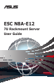 1.1 System package contents Check your system package for the following items. ESC N8A-E12 Chassis ASUS 7U rackmount chassis Motherboard ASUS K14PN-D24 server board Accessory box 1 x ACC instruction card 1 x ASMB11 instruction card 6 x AC power cables 2 x CPU heatsink Optional items 1-2 1 x Rail kit 1 x RAID card cable kit • If any of the above items is damaged or missing, contact your retailer.