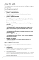 About this guide This user guide contains the information you need when installing and configuring the motherboard. How this guide is organized This guide contains the following parts: • Chapter 1: Product introduction This chapter describes the features of the motherboard and the new technology it supports. • Chapter 2: Hardware information This chapter lists the hardware setup procedures that you have to perform when installing system components.