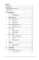 Contents Safety information....................................................................................................... vi About this guide......................................................................................................... vii F1A55 R2.0 specifications summary......................................................................... ix Package contents.......................................................................................................