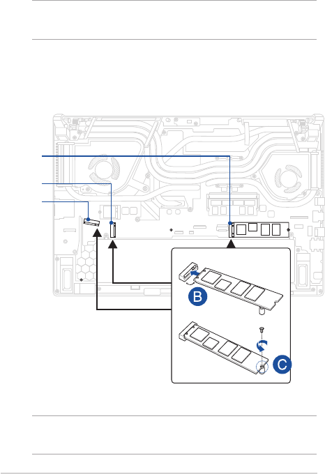 B.  Poravnajte i stavite M.2 karticu u utor za modul kartice.