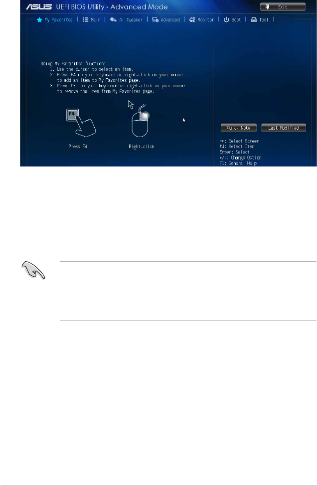 Toaddfrequently-usedBIOSitemstoMyFavorites: