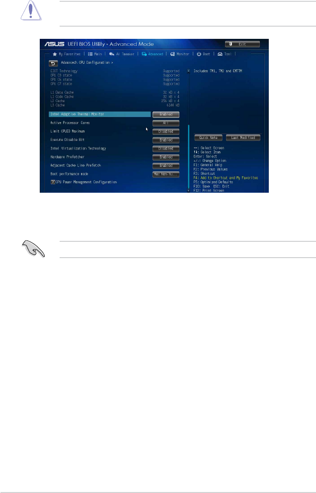 The items shown in submenu may be different due to the CPU you installed.