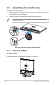 1.3 Assembling the monitor base To assemble the monitor base: 1. Attach the base to the arm and fix with the screw to join them tightly. You can easily tighten the screw by fingers. 2. Adjust the monitor to the angle that is most comfortable for you. We recommend that you cover the table surface with soft cloth to prevent damage to the monitor. 2 1 Make sure to screw the base to the arm tightly. 1.4 Connect cables To connect cables: Connect the cables you need based on chapter 1.5.2, page1-5.