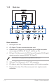1.3 Monitor introduction 1.3.1 Front view 1 1. 2 3 4 5 6 7 Button: • Press this hotkey to switch from six video preset modes (Scenery Mode, Standard Mode, Theater Mode, Game Mode, Night View Mode, and sRGB ) with SPLENDID™ Video Intelligence Technology. • Exits the OSD menu or goes back to the previous menu when the OSD menu is active. The Splendid, Contrast and Brightness adjustment functions will be temporarily disabled while 3D function is activated. 2.