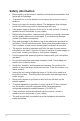 Safety information iv • Before setting up the monitor, carefully read all the documentation that came with the package. • To prevent fire or shock hazard, never expose the monitor to rain or moisture. • Never try to open the monitor cabinet. The dangerous high voltages inside the monitor may result in serious physical injury. • If the power supply is broken, do not try to fix it by yourself. Contact a qualified service technician or your retailer.