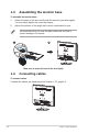 1.3 Assembling the monitor base To assemble the monitor base: 1. Attach the base to the arm and fix with the screw to join them tightly. You can easily tighten the screw by fingers. 2. Adjust the monitor to the angle that is most comfortable for you. We recommend that you cover the table surface with soft cloth to prevent damage to the monitor. 1 2 2 1 Make sure to screw the base to the arm tightly. 1.4 Connecting cables To connect cables: Connect the cables you need based on chapter 1.5.