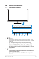 1.5 Monitor introduction 1.5.1 Front of the LCD monitor H/HR/H-P D/N/NR 1 1. 2 3 4 5 6 Button: • Automatically adjust the image to its optimized position, clock, and phase by long pressing this button for 2-4 seconds (for VGA mode only). • Use this hotkey to switch among six video preset modes (Scenery, Standard, Theater, Game, Night View, and sRGB Mode) with SPLENDID™ Video Enhancement Technology. • Exit the OSD menu or go back to the previous menu as the OSD menu is active. 2.