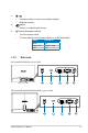M Series (20'' only of D SKU) M Series (20'' only of N SKU) 6 Rear connectors 1-4 1. DC-IN port. This port connects the power cord. 2. VGA port. This 15-pin port is for PC VGA connection. 3. HDMI port. This port is for connection with an HDMI compatible device. 4. Earphone jack. This port is only available when an HDMI cable is connected. 5. Kensington lock slot. 6. DVI port. This port is for PC DVI connection.