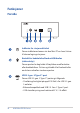 Funksjoner Forside Indikator for stasjonsaktivitet Denne indikatoren tennes når den Mini PC-en leser/skriver til interne lagringsstasjoner. Kontakt for hodetelefon/Hodesett/Mikrofon (ekstrautstyr) Denne porten lar deg koble til høyttalere med forsterker eller hodetelefoner. Du kan også koble til et hodesett eller en ekstern mikrofon via denne porten. USB 3.2 gen. 2 Type-C®-port Denne USB 3.2 gen. 2 Type-C®-porten gir følgende: • Overføringshastighet på opptil 10 Gbit/s for USB 3.2 gen. 2-enheter.