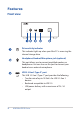 Features Front view Drive activity indicator This indicator lights up when your Mini PC is accessing the internal storage drive. Headphone/Headset/Microphone jack (optional) This port allows you to connect amplified speakers or headphones. You can also use this port to connect your headset or an external microphone. USB 3.2 Gen 2 Type-C® port This USB 3.2 Gen 2 Type-C® port provides the following: • Transfer rate of up to 10 Gbit/s for USB 3.2 Gen 2 devices. • Backward compatible to USB 2.0.