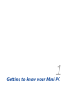 About this manual This manual provides information about the hardware and software features of your Mini PC, organized through the following chapters: Chapter 1: Getting to know your Mini PC This chapter details the hardware components of your Mini PC. Chapter 2: Using your Mini PC This chapter provides you with information on using your Mini PC.