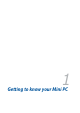 About this manual This manual provides information about the hardware and software features of your Mini PC, organized through the following chapters: Chapter 1: Getting to know your Mini PC This chapter details the hardware components of your Mini PC. Chapter 2: Using your Mini PC This chapter provides you with information on using your Mini PC.
