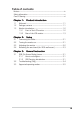 Table of contents Notices ................................................................................................ iv Safety information ............................................................................... v Care & Cleaning ................................................................................... vi Chapter 1: Product introduction 1.1 Welcome! .............................................................................. 1-1 1.2 Package contents ...........................