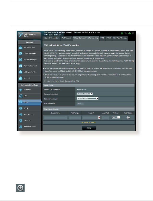 NOTE: When port forwarding is enabled, the ASUS router blocks