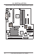 III. INSTALLATION Installation Steps Before using your computer, you must complete the following steps: 1. 2. 3. 4. 5. 6. Set Jumpers on the Motherboard Install System Memory Modules Install the Central Processing Unit (CPU) Install Expansion Cards Connect Ribbon Cables, Cabinet Wires, and Power Supply Setup the BIOS Software 1. Jumpers III. INSTALLATION Jumpers Several hardware settings are made through the use of jumper caps to connect jumper pins (JP) on the motherboard.