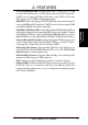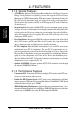 2. FEATURES 2.1.4 Intelligence • • • • • • • • • Auto Fan Off: The system fans will power off automatically even in sleep mode. This function reduces both energy consumption and system noise, and is an important feature in implementing silent PC systems.