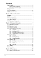 Contents Safeguards About this guide .............................................................................. iii How this guide is organized .................................................... iii Conventions used in this guide ............................................... iii Safety information ........................................................................... vi FCC/CDC statements .................................................................... vii ASUS contact information ........