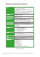 P5LD2-VM specifications summary BIOS features 4 Mb Flash ROM, AMI BIOS, PnP, WfM2.0, DMI2.0, SM BIOS 2.3, ASUS EZ Flash, CrashFree BIOS2, C.P.R. (CPU Parameter Recall) Special features ASUS AI Overclocking ASUS EZ Flash ASUS CrashFree BIOS 2 ASUS MyLogo2™ ASUS CPR (CPU Parameter Recall) I n d u s t r y s t a n d a r d PCI 2.2, USB 2.0 Manageability WfM 2.0, DMI 2.0, WOL by PME, WOR by PME, Chassis Intrussion Internal connectors 2 x USB 2.0 connectors for 4 additional USB 2.