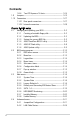 Contents 1.8.6 Two PCI Express x16 slots..................................... 1-24 1.9 Jumpers............................................................................... 1-25 1.10 Connectors.......................................................................... 1-27 1.10.1 Rear panel connectors........................................... 1-27 1.10.2 Internal connectors................................................ 1-28 Chapter 2: BIOS setup 2.1 2.2 2.3 2.