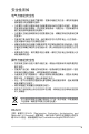 安全性須知 電氣方面的安全性 • 為避免可能的電擊造成嚴重損害,在搬動電腦主機之前,請先將電腦電 源線暫時從電源插槽中拔掉。 • 當您要加入硬件設備到系統中或者要去除系統中的硬件設備時,請務必 先連接該設備的數據線,然後再連接電源線。可能的話,在安裝硬件設 備之前先拔掉電腦電源的電源線。 • 當您要從主板連接或拔除任何的數據線之前,請確定所有的電源線已事 先拔掉。 • 在使用擴展卡或擴展卡之前,我們建議您可以先尋求專業人士的協助。 這些設備有可能會干擾接地的迴路。 • 請確定電源的電壓設置已調整到本國/本區域所使用的電壓標準值。若您 不確定您所屬區域的供應電壓值為何,那麼請就近詢問當地的電力公司 人員。 • 如果電源已損壞,請不要嘗試自行修復。請將之交給專業技術服務人員 或經銷商來處理。 操作方面的安全性 • 在您安裝主板以及加入硬件設備之前,請務必詳加閱讀本手冊所提供的 相關信息。 • 在使用產品之前,請確定所有的排線、電源線都已正確地連接好。若您 發現有任何重大的瑕疵,請儘速聯絡您的經銷商。 • 為避免發生電氣短路情形,請務必將所有沒用到的螺絲、回型針及其他 零件收好,不要遺留在主板上