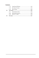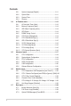 Contents 2.4 2.5 2.6 2.3.1 System Language [English]............................................2-11 2.3.2 System Date...................................................................2-11 2.3.3 System Time...................................................................2-11 2.3.4 Security...........................................................................2-11 Ai Tweaker menu......................................................................... 2-13 2.4.1 Ai Overclock Tuner [Auto].