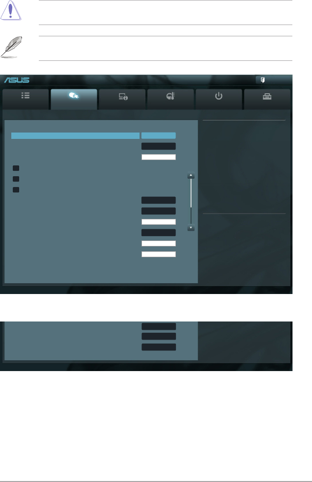 Be cautious when changing the settings of the Ai Tweaker menu items. Incorrect eld