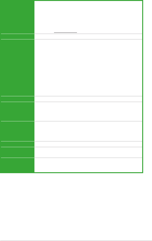 ** Refer to www.asus.com for the latest Memory QVL (Qualied