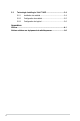 Table des matières 2.3.9 2.3.10 2.4 2.5 2.3.11 3.2 3.3 3.4 3.5 Eteindre l’ordinateur................................................................... 2-41 Programme de configuration du BIOS........................................ 3-1 3.2.1 3.2.2 Menu Ai Tweaker........................................................................... 3-7 Menu Advanced (Avancé)........................................................... 3-13 3.5.1 CPU Configuration (Configuration du CPU)...................