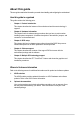 About this guide This user guide contains the information you need when installing and configuring the motherboard. How this guide is organized This guide contains the following parts: • Chapter 1: Product introduction This chapter describes the features of the motherboard and the new technology it supports.