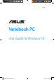 About this user guide This user guide provides an overview of using Windows® 8 plus the exclusive ASUS software applications included with your Notebook PC. As you read along, you will find certain icons, messages, and typography used as follows: Icons The icons below indicate which device can be used for completing a series of tasks or procedures on your Notebook PC. = Use the touchpad. = Use the keyboard.