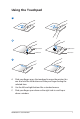 Using the Touchpad A B Right button Right button Left button Left button C A. B. C. Slide your finger across the touchpad to move the pointer. You can also hold the left button and slide your finger to drag the selected item. Use the left and right buttons like a standard mouse. Slide your finger up or down on the right side to scroll up or down a window.